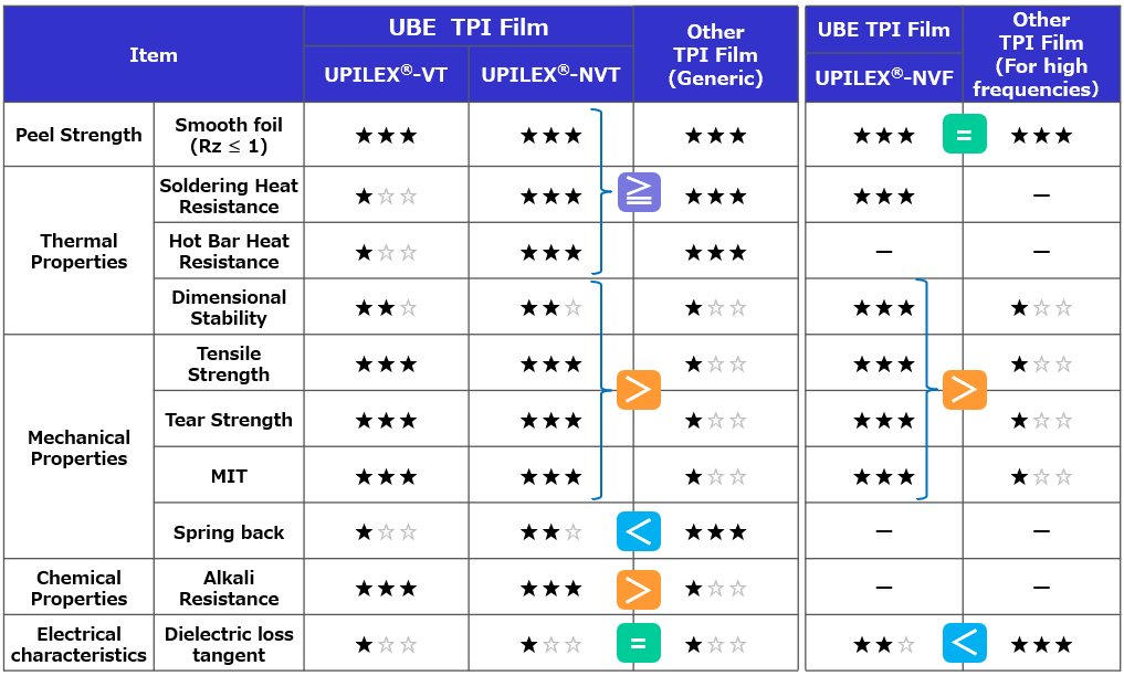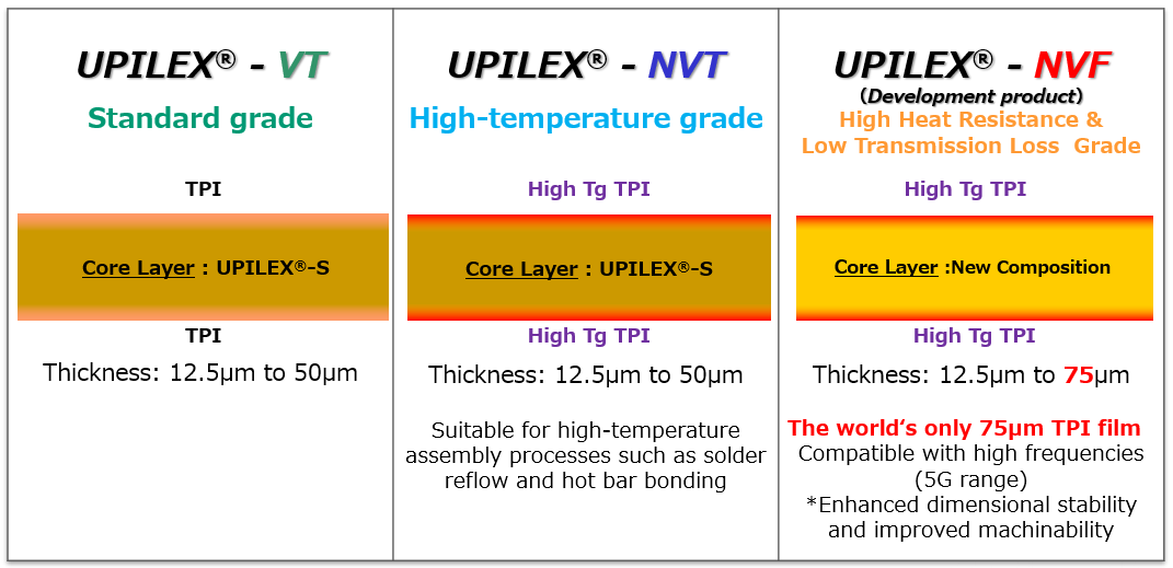 The Peel Strength of UPILEX®-NVF is ≧ 1.0N/mm