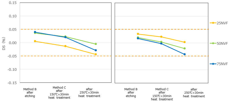 The Dimensional Change of UPILEX®- NVF is within 0.05% after High Temp Treatment