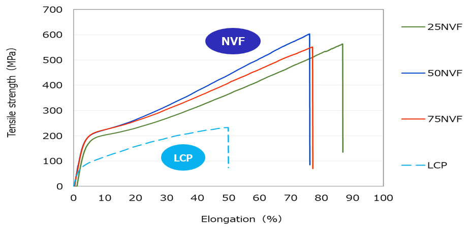 UPILEX®-NVF has superior mechanical properties compared to LCP