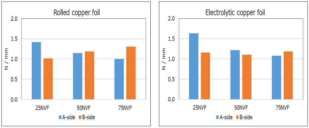 Method : Roll Laminate, Laminate temperature : 360℃, Copper foil :Rolled copper foil / Electrolytic copper foil