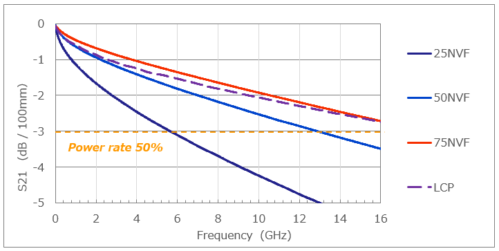 75NVF is lower transmission loss than LCP and can be available in the wide range to high frequency