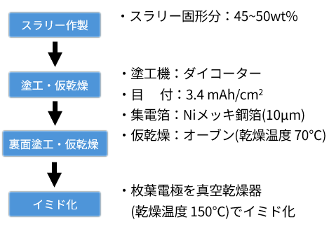 水溶媒ポリイミドバインダ使用時のフルセル用電極作製方法例
