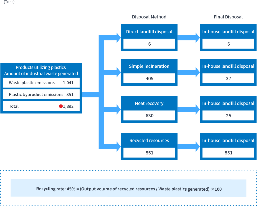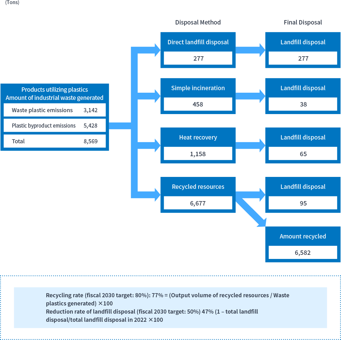 - Reduction rate in the volume of waste disposed of via landfill: 50% or more (from fiscal 2022 levels)