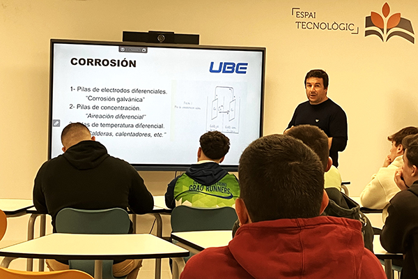 カステリョン県Vicent Castell Institute主催による、工業化学高等技術者コースの職業訓練生向けのUBE専門家による22時間の研修を実施しました。研修内容は電気、エネルギー、分散制御システム、カプロラクタム及びポリアミドの製造、プロセス安全、ポンプ、モーター、コンプレッサーなどです。